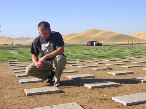 in california, at his grandfather's grave site (this picture was not taken at the release party.)